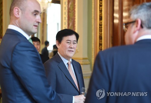 | △ 최경환 부총리, 런던 한국경제설명회 참석자와 대화 (런던=연합뉴스) 최경환 경제부총리가 5일(현지시간) 런던 드레이퍼스 홀에서 런던 금융계를 대표하는 기관투자자와 신용평가사, 이코노미스트들을 초청한 한국경제설명회에서 참석자들과 대화하고 있다. (기획재정부 제공) |