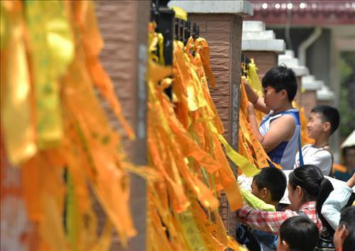 젠리현의 위사(玉沙)초등학교 담장에는 이번 사고 희생자들을 애도하는 글이 적힌 노란 리본이 가득 매달려 마치 지난해 4월 '세월호' 사고 발생 이후 팽목항 주변을 연상케 하기도 했다.