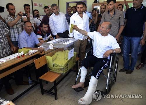 | △ (AP=연합뉴스) 터키 디야르바크르의 HDP 유세장에서 발생한 폭발사건의 부상자들이 7일 총선에서 투표하고 있다. |