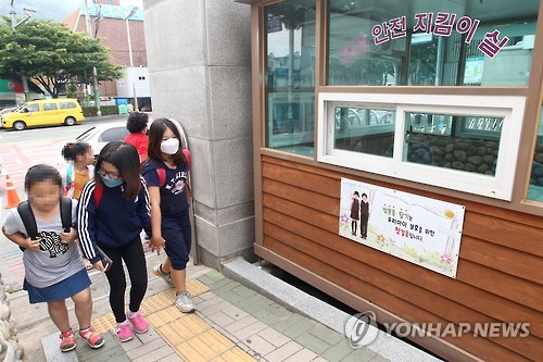 | △ 마스크 쓰고 등교하는 학생 (부산=연합뉴스) 김재홍 기자 = 8일 오전 중동호흡기증후군(메르스)이 확산하는 가운데 마스크를 쓴 학생들이 부산시 연제구 한 초등학교로 등교하고 있다. 부산시교육청은 시내 모든 유치원과 초·중등학교에서 등교하는 학생과 교사를 대상으로 체온을 측정하기로 했다. 2015.6.8 pitbull@yna.co.kr |