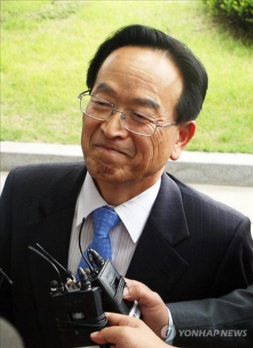 | △ (청주=연합뉴스) 전창해 기자 = 지난 5일 불법 정치자금과 뇌물을 수수한 혐의(특가법상 뇌물수수 등)로 구속 수감되기 전 영장실질심사를 받기 위해 법원에 출두한 임각수 충북 괴산군수. <<연합뉴스 DB>> |