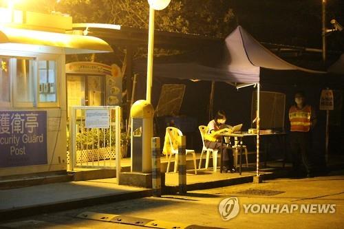 | △ (홍콩=연합뉴스) 최현석 특파원 = 2일(현지시간) 메르스 감염 의심자들이 격리된 맥리호스부인 휴양촌 앞을 경찰관과 민중안전복무대 대원, 휴양촌 보안요원들이 3중 철통 경비 서고 있다. 경비견 두마리도 눈에 띄었지만, 지나가는 사람이 한 명도 없어 적막감이 감돌았다. 2015.6.3 harrison@yna.co.kr |