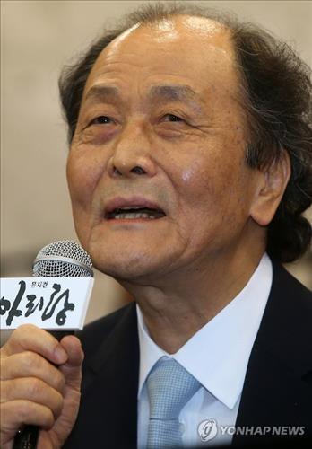 9일 서울 중구 충무아트홀에서 열린 뮤지컬 '아리랑' 제작발표회에 참석한 '아리랑'의 원작자인 소설가 조정래는 "아리랑이 더 좋은 작품으로 탄생해 이 땅을 대표하는 뮤지컬이 되기를 바란다"며 배우와 제작진에게 "최선을 다해달라"고 당부했다.