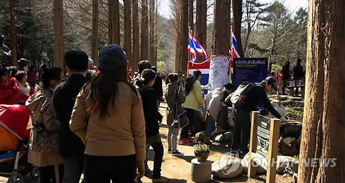| △ (춘천=연합뉴스) 춘천시의 대표적 관광지인 남이섬에 지난 4월 태국의 최대 명절인 '송크란' 연휴를 맞아 많은 관광객으로 붐비고 있다. |