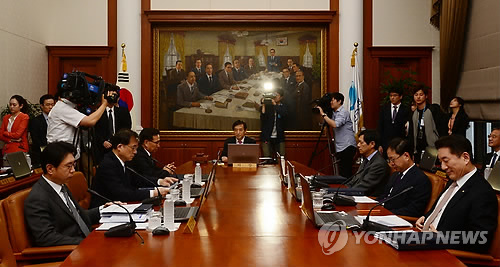 △ '1.75% 기준금리' 향방은? (서울=연합뉴스) 김주성 기자 = 이주열 한국은행 총재가 15일 오전 서울 중구 한국은행에서 현재 연 1.75%인 기준금리 조정 안건을 심의하기 위한 금융통화위원회의를 주재하고 있다. 2015.5.15 utzza@yna.co.kr