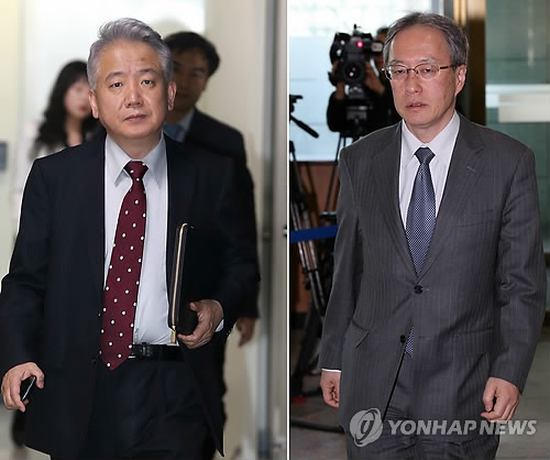 | △ 일본군 위안부 문제 해결을 위한 한일 국장급 간의 8차 협의가 11일 일본 도쿄에서 개최된다. 한국측 대표인 이상덕 외교부 동북아시아국장(왼쪽)과 일본 대표인 이하라 준이치(伊原純一) 외무성 아시아대양주국장. (연합뉴스 자료사진) |