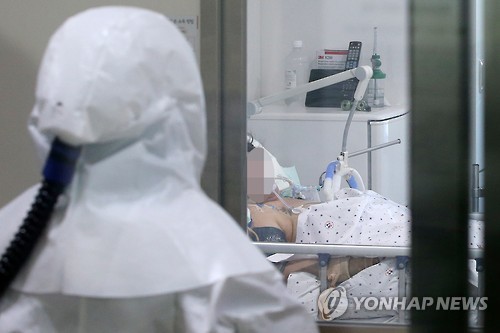 △ 10일 오후 중동호흡기증후군(메르스) 노출자진료병원으로 지정된 서울 중랑구 서울의료원 음압격리병실에 메르스 확진 환자가 입원해 있다.