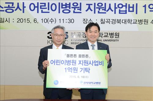 (서울=연합뉴스) 이봉준 기자 = 한국가스공사[036460]는 의료혜택 취약계층 지원 활동인 '몸 튼튼 꿈 튼튼 지원사업'의 하나로 10일 경북대어린이병원에 지원사업비 1억원을 기탁했다고 11일 밝혔다.