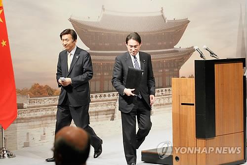 | △ 윤병세 외교부 장관(왼쪽)과 기시다 후미오 일본 외무상이 2015년 3월 21일 서울 중구 신라호텔에서 공동기자회견을 마친 뒤 기자회견장을 나서고 있다.(사진공동취재단=연합뉴스 자료사진) |