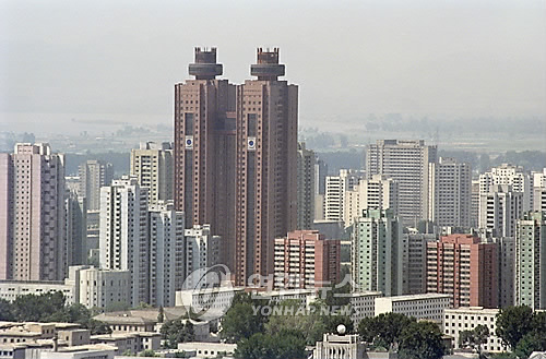 △ 평양시내 중심가에 있는 쌍둥이 빌딩 고려호텔. (연합뉴스 자료사진)