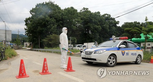| △ '중동호흡기증후군(메르스)' 양성반응 환자가 발생한 전북 순창군 A 마을의 출입을 지난 5일 경찰과 방역 담당자들이 통제하고 있다. |