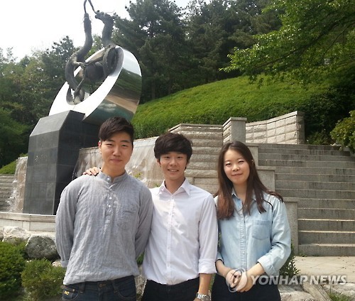 △ 대학생들이 난독증 아동 위한 한글 교구 개발해 (서울=연합뉴스) 대학생들이 한글을 정확하게 읽거나 인지하지 못하는 난독증 어린이들을 위해 한글 교구를 직접 개발해 화제다. 좌측부터 국민대 교육학과 이만희(24)·이연규(24)·강민아(21·여)씨. 이들은 읽고 쓰기에 어려움을 겪는 취학 전후 어린이들을 위한 교구를 만들어 중소기업청 지원을 받아 상용화에 나설 예정이다. 2015. 6. 14 << 이연규씨 제공 >> photo@yna.co.kr