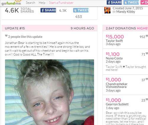 13일(현지시간) 미국 언론에 따르면, 스위프트는 딱한 사정을 접하고 온라인 기금 모금 사이트인 고펀드미닷컴을 통해 1만5천 달러(약 1천676만원)를 냈다.