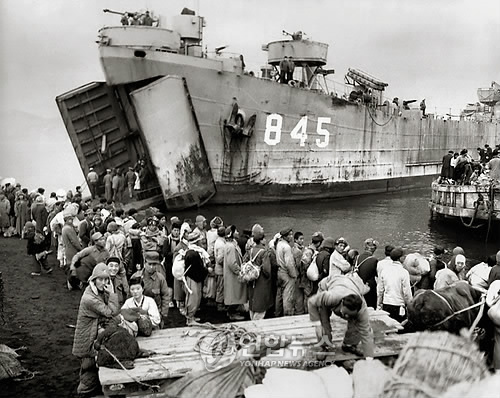△ 철수하는 유엔군 수송선에 오르기 위해 몰려든 피란민들의 모습(1950.12.19). (눈빛출판사 제공)