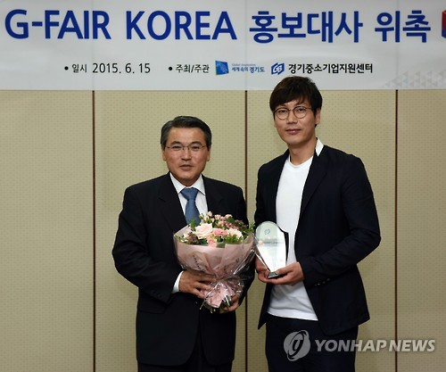 (수원=연합뉴스) 김인유 기자 = 경기중소기업종합지원센터는 15일 센터 4층 회의실에서 위촉식을 열고 송종국 축구해설가를 '2015 G-FAIR KOREA 홍보대사'로 임명했다.