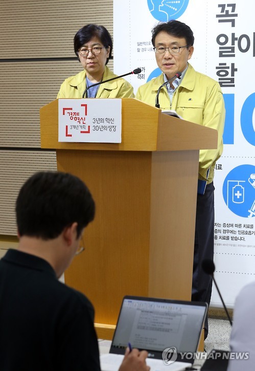 | △ 권덕철 총괄반장, '메르스는' (세종=연합뉴스) 배재만 기자 = 권덕철 중앙메르스관리대책본부 총괄반장이 15일 오전 정부세종청사 보건복지부 공용브리핑룸에서 열린 중동호흡기증후군(메르스) 정례 브리핑에서 기자들의 질문에 답하고 있다. 왼쪽은 정은경 현장점검반장. 2015.6.15 scoop@yna.co.kr http://blog.yonhapnews.co.kr/f6464 |