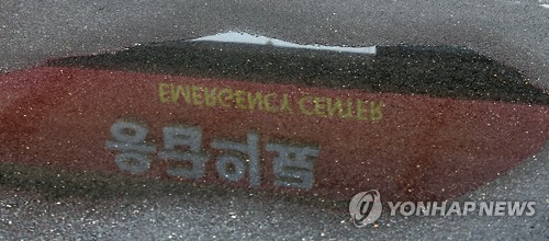 | △ 메르스 첫 진원지 평택성모병원 직원들 자가격리 해제 (평택=연합뉴스) 신영근 기자 = 중동호흡기증후군(메르스) 첫 진원지인 평택성모병원 직원들의 자가격리 끝난 가운데 몇몇 직원들이 출근해 재개원 준비에 나서고 있다. 사진은 14일 오전 비가 내려 고인 웅덩이에 비친 경기도 평택성모병원 응급의료센터의 모습. 2015.6.14 drops@yna.co.kr http://blog.yonhapnews.co.kr/geenang |