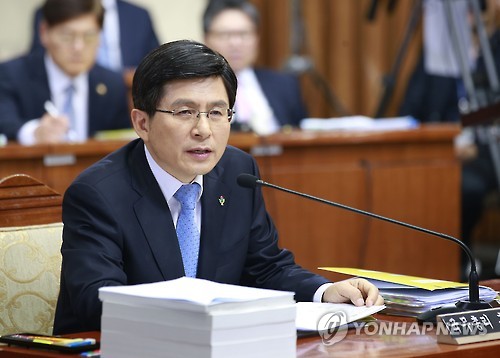 | △ 황교안 총리 후보자 인사청문회 (서울=연합뉴스) 이상학 기자 = 황교안 국무총리 후보자가 지난 9일 오전 국회에서 열린 인사청문회에서 위원들의 질의에 답변하고 있다. |