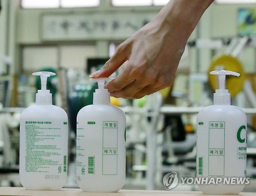 | △ 손소독은 철저히 (서울=연합뉴스) 김도훈 기자 = 16일 오후 서울 노원구 태릉선수촌에서 훈련을 마친 아이스 하키 선수가 손소독제로 손을 닦고 있다. 2015.6.16 superdoo82@yna.co.kr |