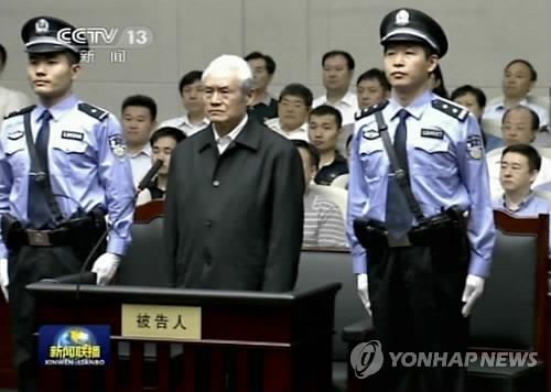 | △ 부패 혐의로 기소돼 1심에서 무기징역을 선고받은 저우융캉 전 중국 공산당 중앙정치국 상무위원.(AP=연합뉴스 자료사진) |