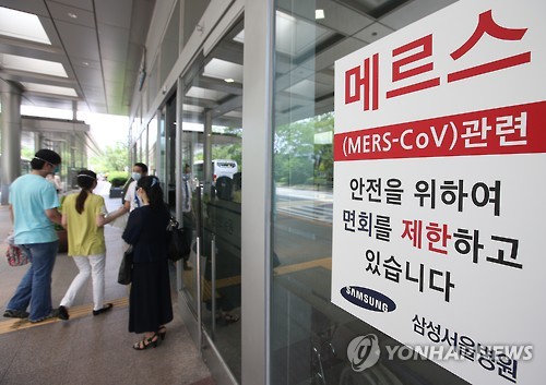 | △ 메르스로 삼성서울병원 면회 제한 (서울=연합뉴스) 임헌정 기자 = 17일 중동호흡기증후군(메르스) 확산 여파로 부분적인 병원 폐쇄조치가 내려진 서울 일원동 삼성서울병원에서 보안요원이 일반인의 출입을 통제하는 가운데 외래진료 환자들이 병원 안으로 들어가고 있다. |