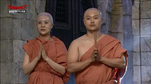 여성 승려(강유미)와 남성 승려(김민교)가 금불상을 사왔는데 알고보니 사람이 불상인 척하고 있었다는 설정으로, 엉터리 태국어와 함께 불상(조세호)을 때리려고 손짓하고 머리에 있는 과자를 부수는 등의 장면이 문제가 됐다.