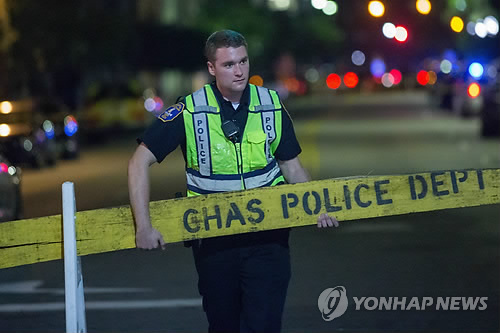 | △ 美흑인교회서 백인청년 총기난사 (찰스턴 EPA=연합뉴스) 17일(현지시간) 미국 사우스캐롤라이나주 찰스턴의 유서깊은 흑인교회 '이매뉴얼 아프리칸 감리교회'에서 백인 청년의 총기난사로 최소 9명이 숨졌다. 용의자는 이날 오후 교회로 난입해 지하 예배실에 모여있던 신자들에게 마구 총을 쏜 뒤 달아났다. 사진은 이날 경찰이 사건 현장 인근 도로를 차단하는 모습. 2010596@yna.co.kr epa04805824 A Police officer closes-off Calhoun Street near the Emanuel African Methodist Episcopal (AME) Church, the oldest AME church in the South, where multiple shooting victims have been reported in Charleston, South Carolina, USA, 17 June 2015. According to media reports, Charleston police is searching for a white male suspect after the shooting at the historic black church on 17 June 2015. Multiple casualties are feared in the incident. EPA/RICHARD ELLIS |