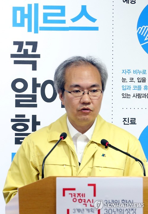 | △ 권준욱 기획총괄반장, '메르스 치료중인 환자 118명' (세종=연합뉴스) 배재만 기자 = 권준욱 중앙메르스관리대책본부 기획총괄반장이 16일 오전 정부세종청사 보건복지부 공용브리핑룸에서 열린 중동호흡기증후군(메르스) 정례 브리핑에서 15일 현재 전국에서 메르스를 치료 받는 환자가 총 118명으로 집계됐다고 밝히고 있다. 이는 음압격리병실에 입원한 중동호흡기증후군(메르스) 환자 수가 이번 사태 들어 처음으로 이틀 연속 감소한 것이다. 2015.6.16 scoop@yna.co.kr http://blog.yonhapnews.co.kr/f6464 |