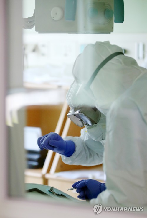 | △ 엑스레이 촬영 준비하는 의료진 (서울=연합뉴스) 김도훈 기자 = 14일 오후 중동호흡기증후군(메르스) 노출자 진료병원인 서울시 은평구 서북병원에서 의료진이 환자의 엑스레이 촬영을 하기 전 감염을 막기 위해 장비에 비닐을 씌우고 있다. 2015.6.14 superdoo82@yna.co.kr |