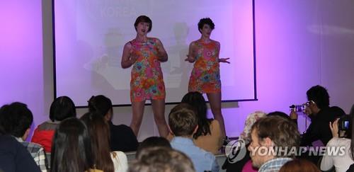 △ (시드니=연합뉴스) 김기성 특파원 = 호주 시드니 주재 한국문화원(원장 안신영)에서 지난 17일 열린 '한국어 말하기 대회' 행사 중 K-팝 공연을 전문적으로 하는 호주의 두 여성이 실력을 뽐내고 있다. 2015.6.19