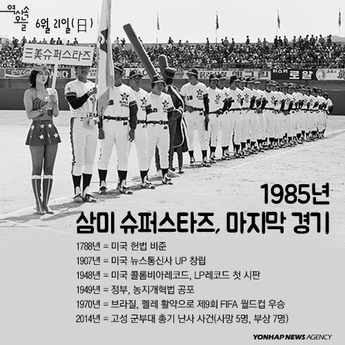 (서울=연합뉴스) 1985년 6월21일, 지금은 사라진 인천 숭의야구장에서 인천 연고 프로야구단 삼미 슈퍼스타즈의 마지막 경기가 열렸다. 삼미는 팀 고별전에서 롯데 자이언츠에 6-16으로 졌다. 삼미의 대표 투수 장명부(1950∼2005)가 5게임 출장정지에서 풀려 선발로 나섰지만, 일찌감치 8실점 하며 한국 프로 무대 50패째를 기록했다.
