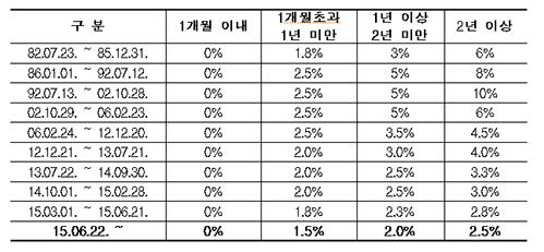 개정안을 보면, 청약저축 가입기간이 1개월에서 1년 미만일 때 금리는 연 1.8%에서 1.5%로 떨어지고 1년 이상 2년 미만이면 연 2.3%에서 2.0%가 된다. 2년 이상은 연 2.8%에서 2.5%로 인하된다.