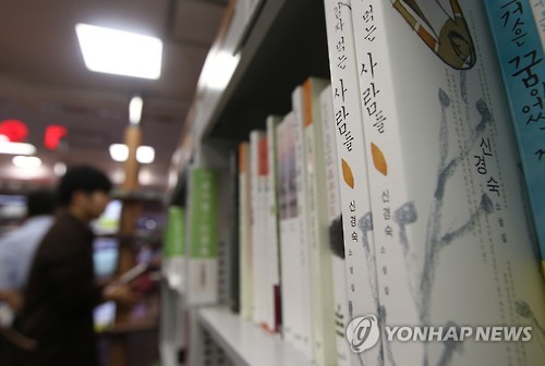| △ 신경숙 표절 논란 확산 (서울=연합뉴스) 김주성 기자 = 소설가 신경숙의 작품 표절 여부를 놓고 문학계 내 논쟁이 확산되는 가운데, 19일 신 작가가 업무방해와 사기 혐의로 검찰에 고발됐다. 19일 서울 교보문고 광화문점의 작가별 소설코너에 표절 의혹을 받는 단편 '전설'이 포함된 소설집 '감자 먹는 사람들'이 꽂혀 있다. 2015.6.19 utzza@yna.co.kr |