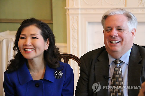 | △ 방한 예정인 美메릴랜드 주지사 부부 (워싱턴=연합뉴스) 노효동 특파원 = 래리 호건 미국 메릴랜드 주지사와 한국계 미국인으로서는 첫 주지사 '퍼스트레이디'가 된 유미 호건 여사가 28일(현지시간) 미국 메릴랜드 주도 애나폴리스 주지사 관저에서 연합뉴스·연합뉴스TV와 인터뷰를 갖고 있다. 호건 주지사 내외는 오는 5월 말 또는 6월 초 한국을 방문할 예정이며 박근혜 대통령 예방을 추진하고 있다.2015.3.1 rhd@yna.co.kr |