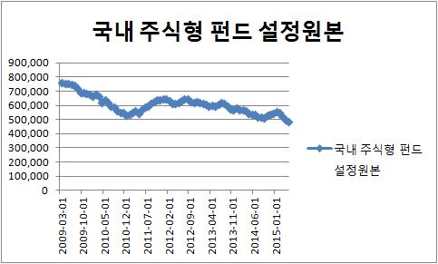 이후 6년여 기간에 국내 순수 주식형 펀드 설정액은 29조원이나 감소했다.