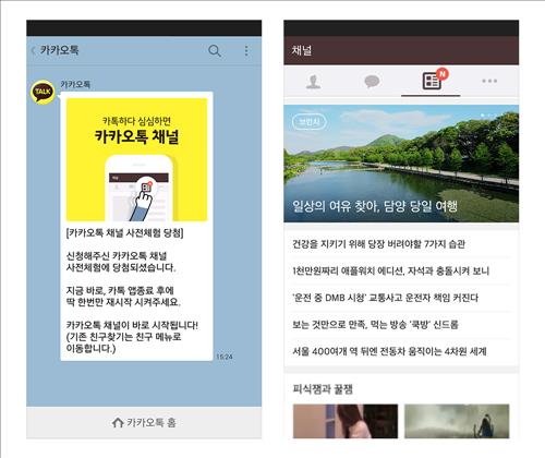 (서울=연합뉴스) 윤보람 기자 = 카카오톡에서 다양한 콘텐츠를 감상하고 공유할 수 있는 다음카카오[035720]의 신규 서비스인 '채널'이 23일 사전 체험단을 대상으로 첫 선을 보였다.