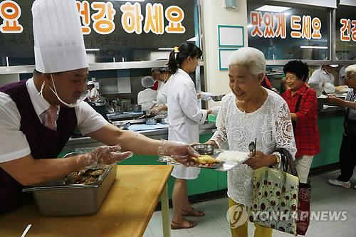 △ 급식 봉사하는 김영만 충북 옥천군수 <<연합뉴스 DB>>