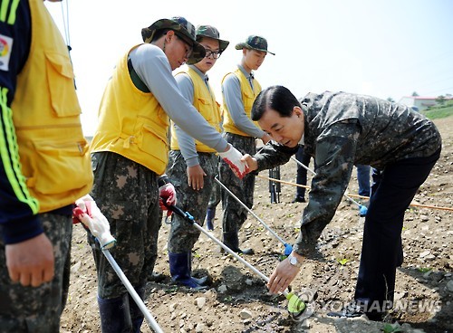 (서울=연합뉴스) 이영재 기자 = 한민구 국방부 장관이 24일 강원도 가뭄 피해 현장을 찾아 직접 농민의 고충을 듣고 군의 가뭄 피해 지원을 독려했다고 국방부가 밝혔다.