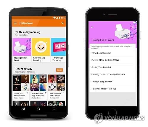 (서울=연합뉴스) 윤보람 기자 = 구글이 음원 스트리밍 서비스인 '구글 플레이 뮤직'의 무료 버전을 출시했다.