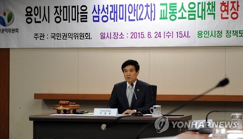 국민권익위원회는 24일 오후 용인시청에서 이성보 위원장 주재로 현장조정회의를 열어 삼성래미안 2차 아파트 주민 1천219명이 제출한 도로교통소음 민원을 중재했다.
