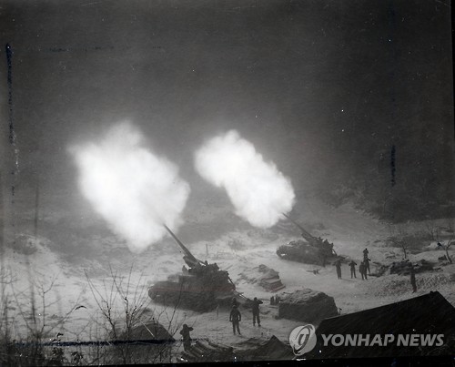 | △ 국가기록원, 6.25전쟁 관련 사진 공개 (서울=연합뉴스) 행정자치부 국가기록원이 6.25전쟁 관련 사진을 24일 공개했다. 국가기록원은 2013년부터 미국 국립기록관리청에서 6.25전쟁 관련 사진 7천 여 매를 수집·정리 중이고, 그 중 일부를 국가기록원 홈페이지를 통해 공개한다고 밝혔다. 사진은 1951년 11월 26일 적진을 향해 포격하는 미 제25사단 소속 탱크부대. 2015.6.24 << 국가기록원 제공 >> photo@yna.co.kr |