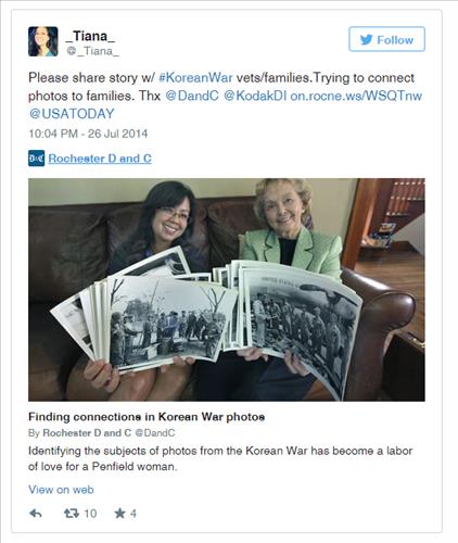 미국 국방부가 한국전쟁 초기에 촬영한 흑백사진 속 인물들이 한국전 참전 여군과 참전자 손녀가 3년째 벌이고 있는 캠페인을 통해 속속 유족과 '상봉'하고 있다.