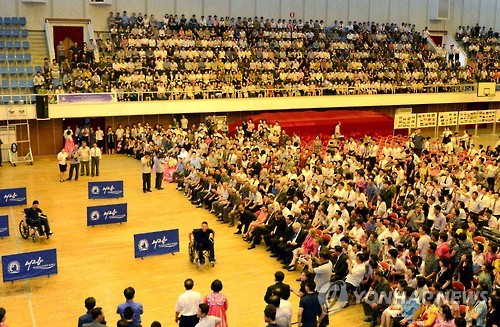 △ 지난 6월 평양에서 열린 '2015년 국내장애자의 날 연환모임'당시 모습이다.