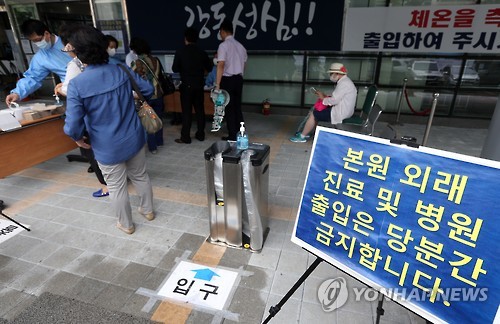 | △ 출입통제 철저 (서울=연합뉴스) 신준희 기자 = 26일 오후 서울 강동구 강동성심병원에 마련된 중동호흡기증후군(메르스) 임시 진료소에 병원 출입 통제 안내문이 붙어 있다. 이날 메르스 확진자는 1명, 사망자는 2명 늘었으며, 격리대상자는 289명 증가했다. |