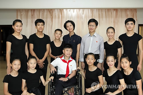 | △ 사진은 지난해 8월 평양에서 북한 장애인 학생들이 영국 옥스퍼드대와 케임브리지대 공연앞두고 연습하는 도중 포즈를 취하는 장면. 2015.6.27. << 두라 제공 >> |