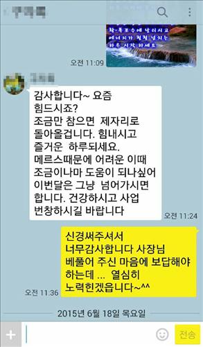 최근 메르스 사태 이후 매상이 확 줄어들어 걱정하고 있던 찰나 가슴 뭉클한 메시지였다.