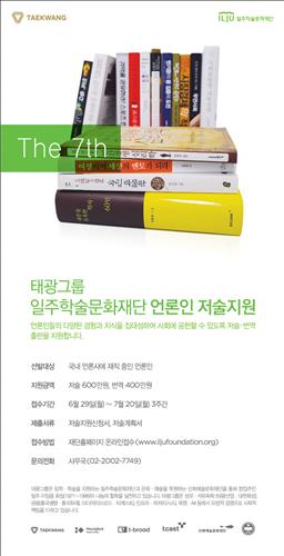 (서울=연합뉴스) 옥철 기자 = 태광그룹 일주학술문화재단은 29일부터 다음 달 20일까지 '제7회 언론인 저술지원 사업' 신청자를 모집한다고 28일 밝혔다.