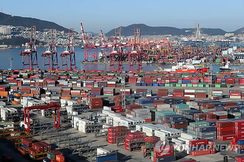 | △ 부산항 신선대부두에 수출입 화물이 쌓여 있다. (연합뉴스 자료사진) |