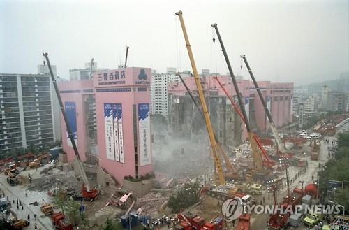 △ (서울=연합뉴스) 6월 29일은 서울 강남 한복판의 삼풍백화점이 순식간에 무너진 지 20년이 되는 날이다. 502명의 목숨을 앗아가 건국 이래 최대 참사로 기록된 삼풍백화점 붕괴사고는 우리 사회의 안전불감증과 부패의 대가가 얼마나 참혹할 수 있는지를 보여줬다. 사진은 1995년 6월30일 삼풍백화점 붕괴사고 이틀째 합동구조반이 대형 기중기를 동원, 잔해 철거작업을 벌이고 있는 모습. 2015.6.28 <<연합뉴스DB>> photo@yna.co.kr (끝)