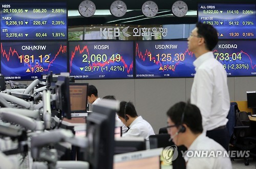 이날 코스피는 전날보다 29.77포인트(1.42%) 내린 2,060.49로 마감했다.